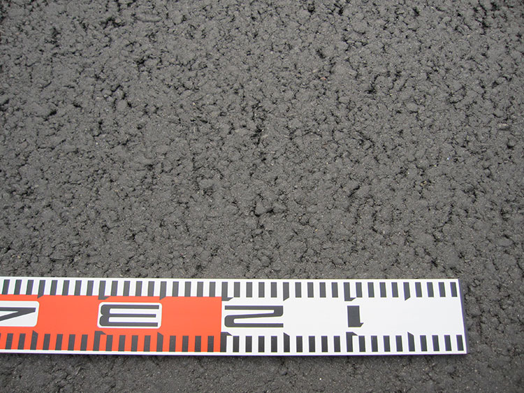 わだち掘れは、車輪の通行位置がへこむように変形する現象です。